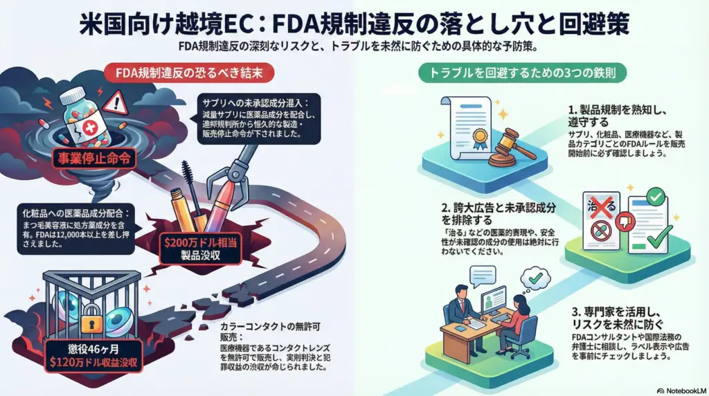 FDA違反による越境EC事業者の法的トラブル事例と予防策